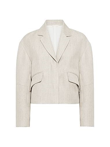 Brunello Cucinelli Льняной блейзер с роговыми пуговицами и моноли декором, 100% лен, Италия