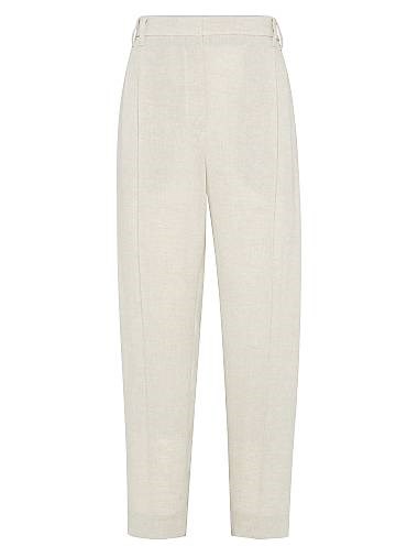 Brunello Cucinelli Льняные блестящие брюки с декором из монели, производство Италия