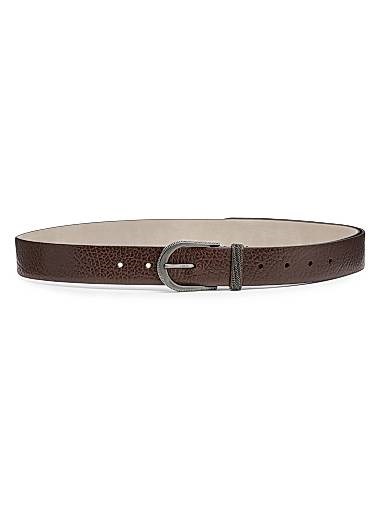 Brunello Cucinelli Ремень из гладкой натуральной кожи с фактурным узором и украшением из монели, ширина 3.5 см