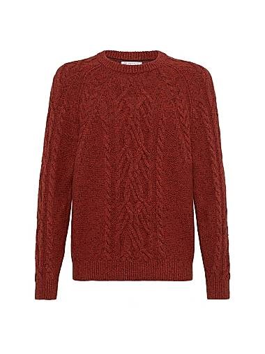 Brunello Cucinelli Свитер с широким плетением из пестрого 100% кашемира с круглым вырезом, произведённый в Италии