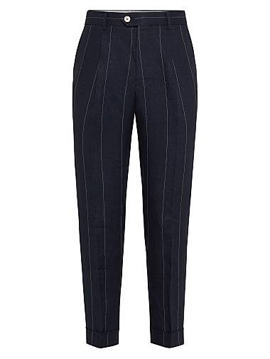 Brunello Cucinelli Свободные льняные штаны с широкими полосками и стрелками, 100% лен, Италия