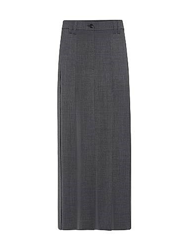 Brunello Cucinelli Techno Virgin Wool Gauze Long Pleated Skirt with Monili