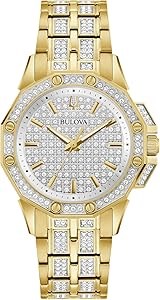 Bulova Женские кварцевые часы с кристаллами и золотым сегментом из коллекции Octava, водонепроницаемые до 30 м, с 3 стрелками