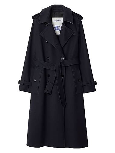 Это классическое пальто-тренч выполнено из кашемира, который защищает от воды и ветра. Легкий тканый материал полностью подбит, а подворотник оформлен проверенной узорчатой тканью Burberry. Модель Kensington имеет стандартный фасон с вшитыми рукавами и двойной застежкой.