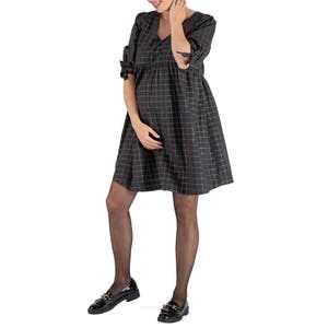 Элегантный принт в клетку покрывает это мягкое платье из органического хлопка, оформленное V-образным вырезом, рукавами до локтя с завязками и удобным верхом для кормления.
