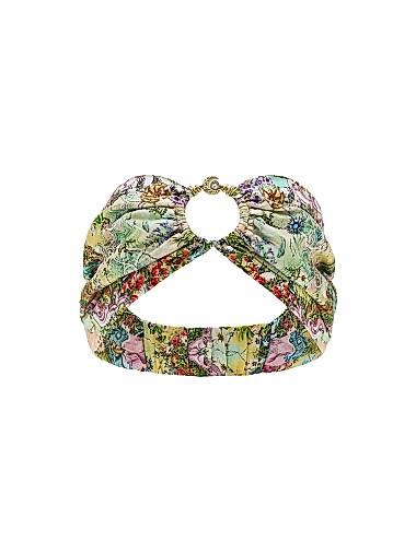 Головной ободок из коллекции Just Coasting. Изготовлен из печатного шелка, этот собранный ободок украшен кольцом с гравировкой в золотом цвете.