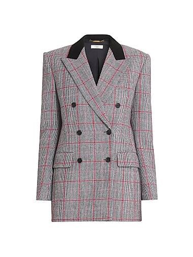 Пиджак Chloe с бархатными акцентами и двойным рядом застежек изготовлен из шерсти с узором Принц Уэльский и украшен пуговицами из рога.