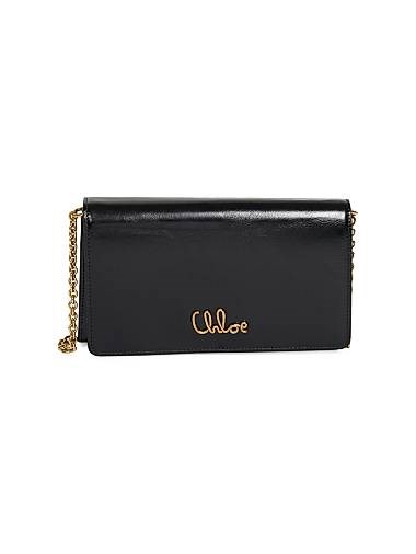 Chloe Кожаная лакированная сумка через плечо с застежкой и логотипом на клапане