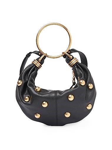 Chloe Маленькая хобо-сумка из зернистой кожи с браслетной ручкой и шипованным декором