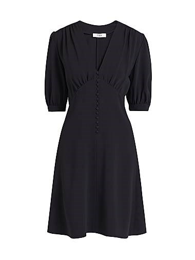 Изготовлено в Италии, это мини-платье Chloe с застежкой на пуговицы имеет глубокий V-образный вырез и рукава с самозавязывающимися лентами.