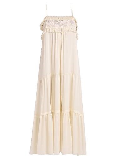 Это платье-ночнушка с многослойным дизайном от Chloe выполнено из 100% шелка и украшено ажурной отделкой.