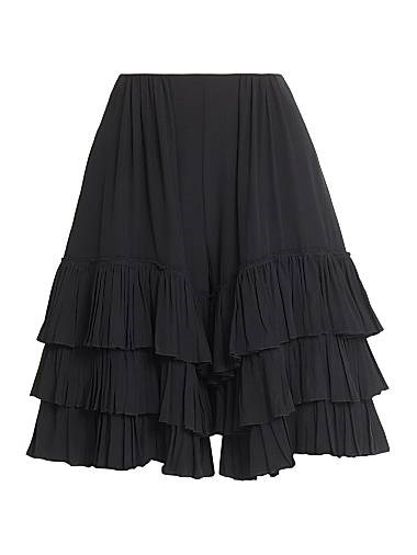 Эти шорты из тонкого шелка имеют многослойный дизайн, который напоминает классический силуэт панталонов с рюшами на манжетах.