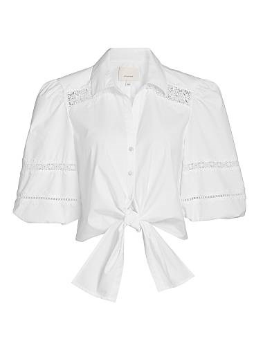 Cinq a Sept Блуза Marianna с цветочной кружевной отделкой, рукавами-пуффами и пуговицей спереди от Cinq a Sept