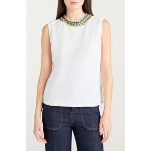 Cinq a Sept Хлопковый топ с кристаллическим декором от Cinq a Sept, 100% хлопок, застёжка на пуговицу