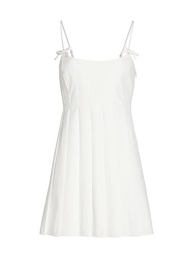 Мини-платье Letty от Cinq a Sept выполнено из пике и украшено коробчатыми складками, продолжающимися от панелированного лифа. Очаровательные банты соединяют тонкие бретели с круглым вырезом.