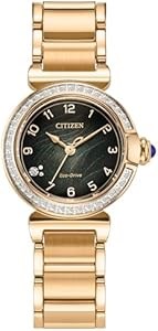 Citizen Женские часы с зеленым циферблатом, браслет из розового золота, кожаный ремешок, 26 мм