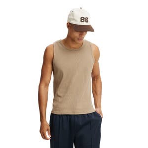 Cotton On Мужская майка Rib Tank без рукавов с классическим вырезом и прямым подолом для повседневной носки