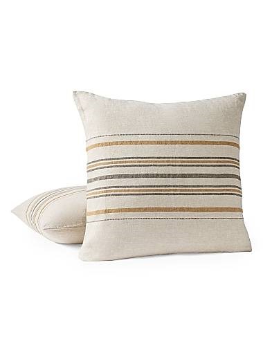 Coyuchi Декоративная наволочка из 100% органического льна, квадратная 56 см x 56 см, стиль с полосами, возможность машинной стирки