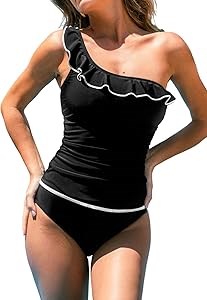 Дизайн: Этот комплект купальников Tanksini отличается игривым стилем с асимметричным вырезом на одно плечо, декорированным воланами, что придает женственность. Регулируемая бретелька обеспечивает индивидуальную посадку, а сборки создают эффект коррекции живота.
