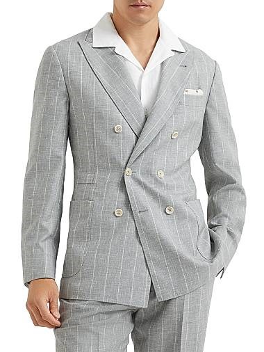Деконструированный пиджак Fresco от Brunello Cucinelli из 100% шерсти с шестикнопочной застёжкой и карманами