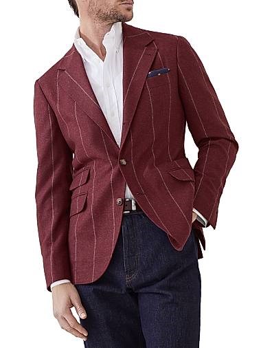 Деконструированный шелковый пиджак в мелкую полоску из шерсти и кашемира от Brunello Cucinelli, Италия