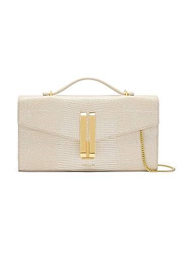 Demellier Сумка-клатч Vancouver из кожи с текстурой ящерицы, 25 см, с ручкой и золотистой застежкой