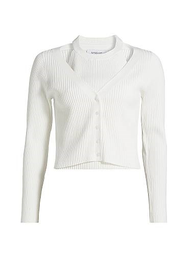 Derek Lam Кардиган Lonnie из ребристого стрейчевого трикотажа с открытыми плечами и пуговичной застежкой