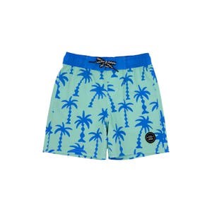 Ваш ребенок может легко перемещаться от бассейна к парку в легких шортах с волнообразным узором пальм, выполненных из влагоотводящей ткани и оснащенных удобным эластичным поясом.
