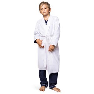 Предложите своему малышу лёгкий халат для ленивых утр с мягким начёсом из хлопкового смесового материала, который становится ещё уютнее после каждой стирки.