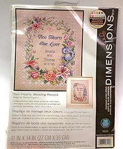 Dimensions Набор для вышивки крестиком «Два Сердца» для свадебного свидетельства 28x36 см с предварительным дизайном