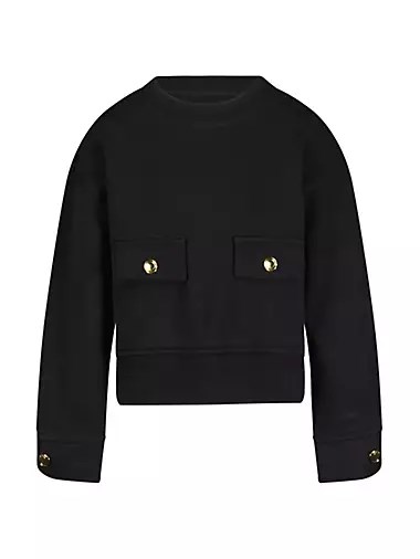 Лонгслив Edie с длинным рукавом и коротким кроем, имеет круглый вырез и отделку в рубчик по нижнему краю, вырезу и манжетам. Изготовлен из французского терри с дополнительными деталями на передних карманах. Включает элементы с золотым фурнитурой, тональную строчку, аккуратную отделку и вышивку на рукаве.
