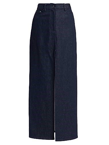 Длинная джинсовая юбка А-силуэта из хлопка и льна от Michael Kors с пятью карманами и разрезом спереди