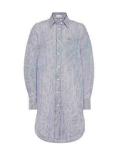 Длинная полосатая рубашка из льна и шелка от Brunello Cucinelli с классическим воротником и нагрудным карманом