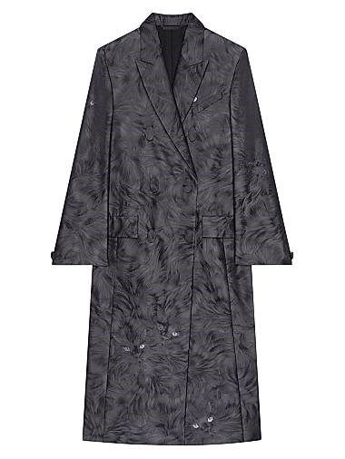 Длинное кашемировое пальто Givenchy с жаккардовым рисунком в виде кошек, овальные пуговицы, 52% полиэстер, 48% шелк, Италия