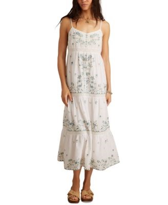 Длинное макси-платье Lucky Brand без рукавов с вышивкой и регулируемыми бретелями, хлопок/вискоза