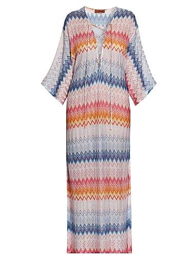 Это покрывало от Missoni с мерцающим покрытием, глубоким V-образным вырезом и характерными зигзагообразными полосами.