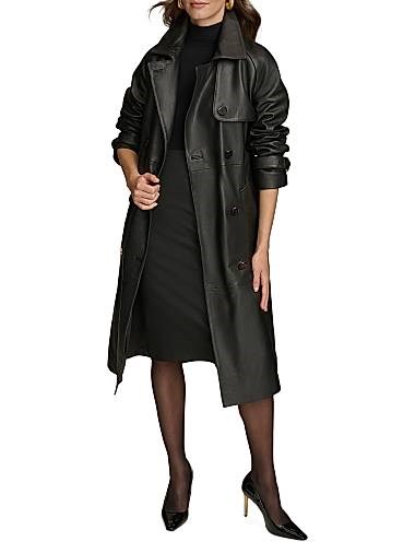 Этот двубортный тренч-код от Donna Karan выполнен из мягкой овечьей кожи.
