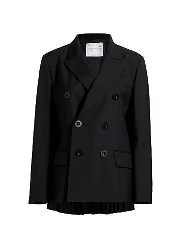 Двубортный пиджак из высококачественной шерсти Sacai с накладными карманами и лацканами, 70% полиэстер, 30% шерсть