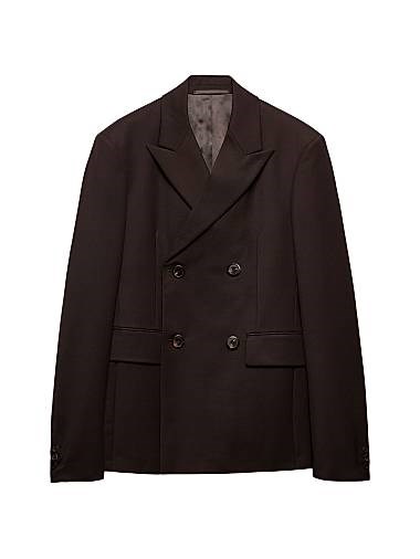 Двубортный шерстяной пиджак Prada с экстра-узким кроем, пиковыми лацканами и высококачественной отделкой