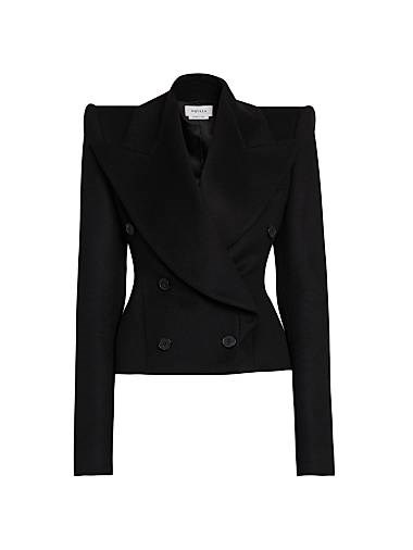 Куртка из шерсти и кашемира McQueen выполнена в двубортном силуэте с широкими плечами.