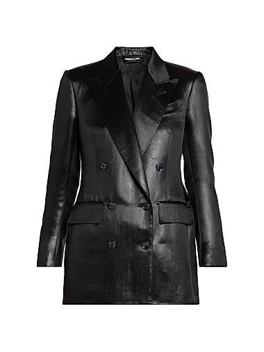 Двубортный жакет из жидкого сатина Tom Ford с острыми лацканами и длинными рукавами, изготовленный в Италии