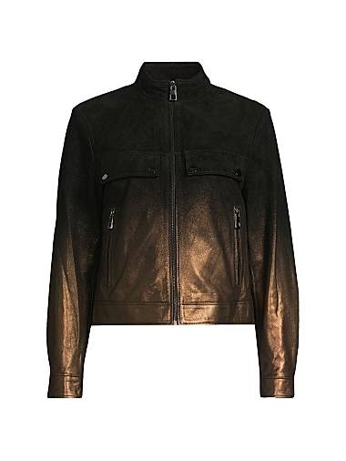 Двухцветная замшевая куртка-тракер Misook отличается особым омбре, придающим изделию художественный акцент.