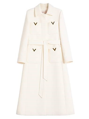 Двустороннее шерстяное пальто Drill от Valentino Garavani с поясом и золотыми деталями