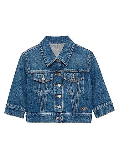 Джинсовая блузка Prada с контрастной строчкой, короткими рукавами и накладными карманами