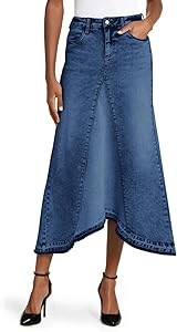 Джинсовая макси-юбка Fisoew с высокой талией и асимметричным подолом, 68% хлопок, 30% полиэстер