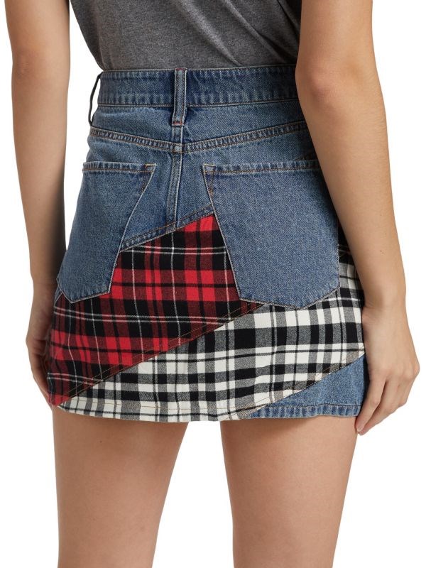 Джинсовая мини-юбка Lisanne с клетчатыми патчворк-вставками от Alice + Olivia, 100% хлопок, 5 карманов
