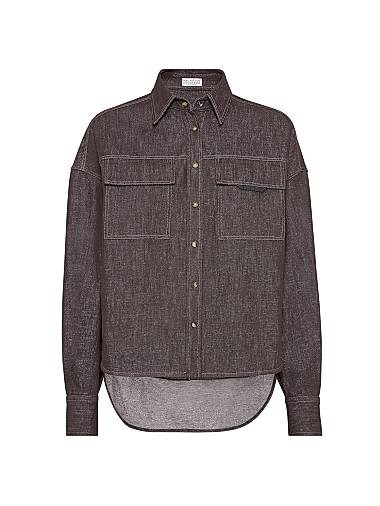 Джинсовая рубашка Brunello Cucinelli с блестящими деталями, классическим воротником и фурнитурой из рога, 60% хлопок.