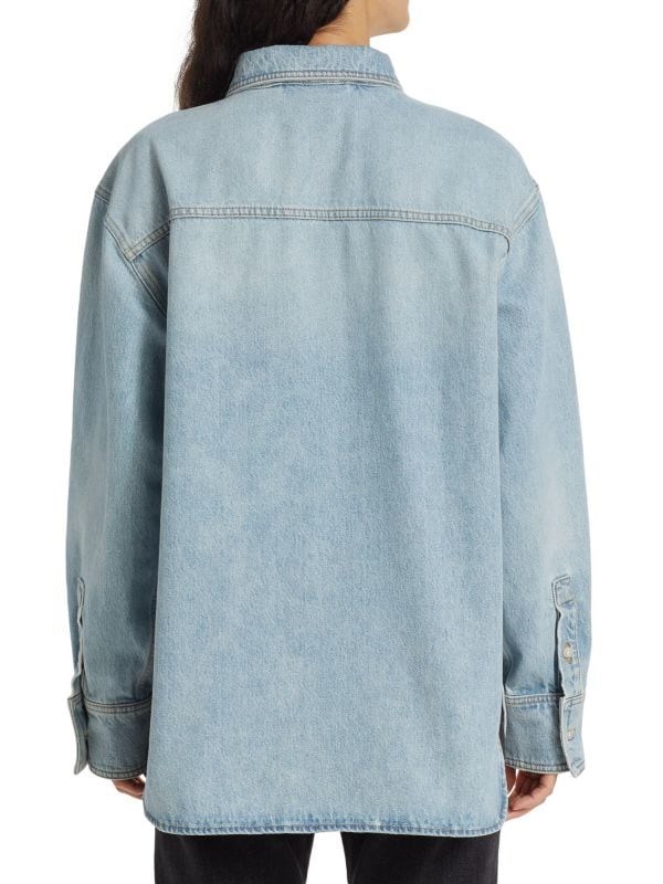 Джинсовая рубашка с силуэтом оверсайз, выполненная из прочного денима. Классический воротник и подол в стиле рубашки делают эту модель универсальной.