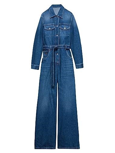Джинсовый комбинезон Prada с вышивкой и логотипом, свободный крой, 100% хлопок, Италия