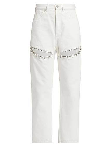 Джинсы Area с декоративными камнями, фигурными разрезами и высокой талией, 100% хлопок, 5 карманов